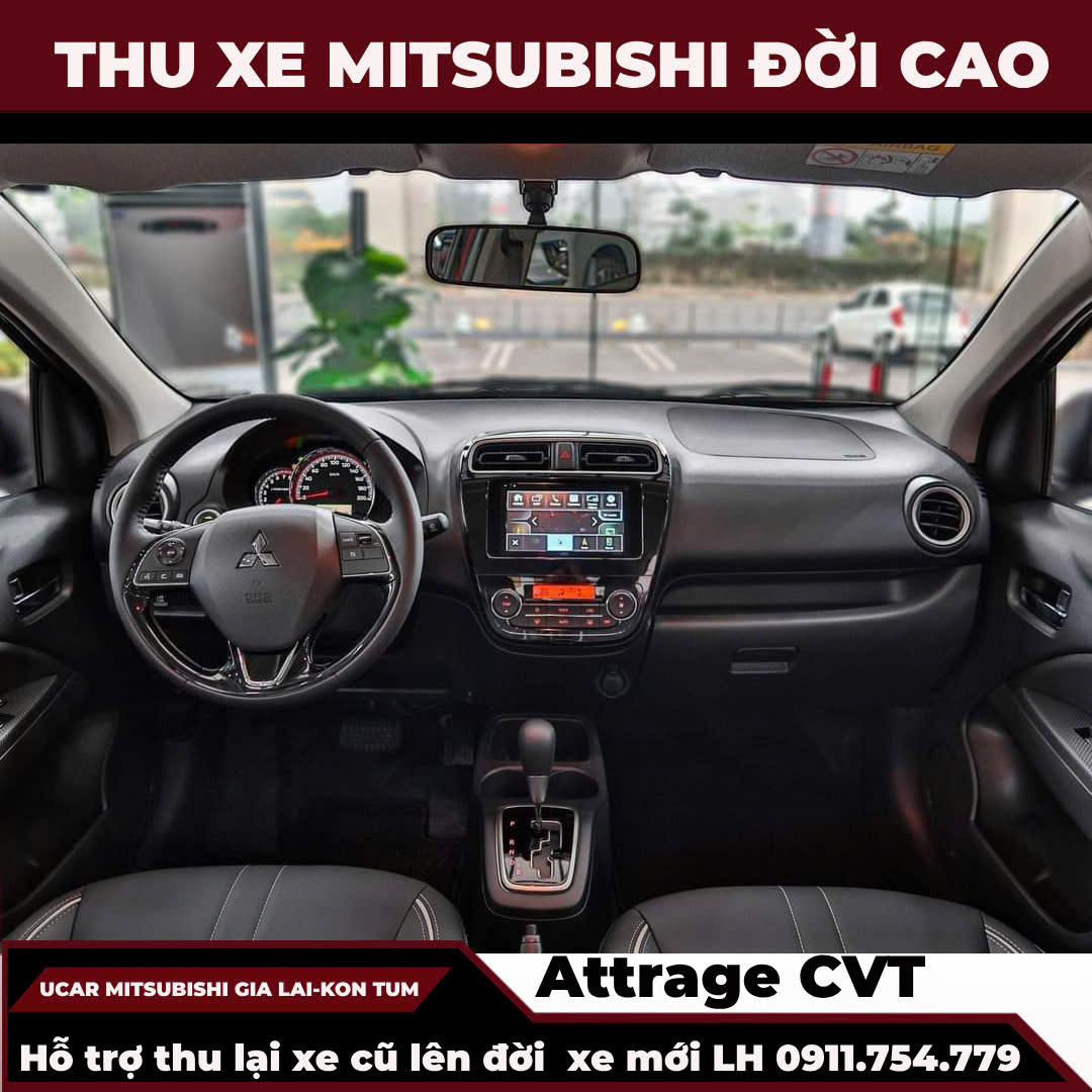 Attrage CVT vẫn được trang bị chìa khóa thông minh, khởi động nút bấm, ghế da, nút chỉnh âm thanh trên vô lăng, hệ thống điều hòa tự động, gương gập điện và kèm theo đó là những trang bị dành cho hàng ghế thứ 2 như tựa tay với hốc để cốc.